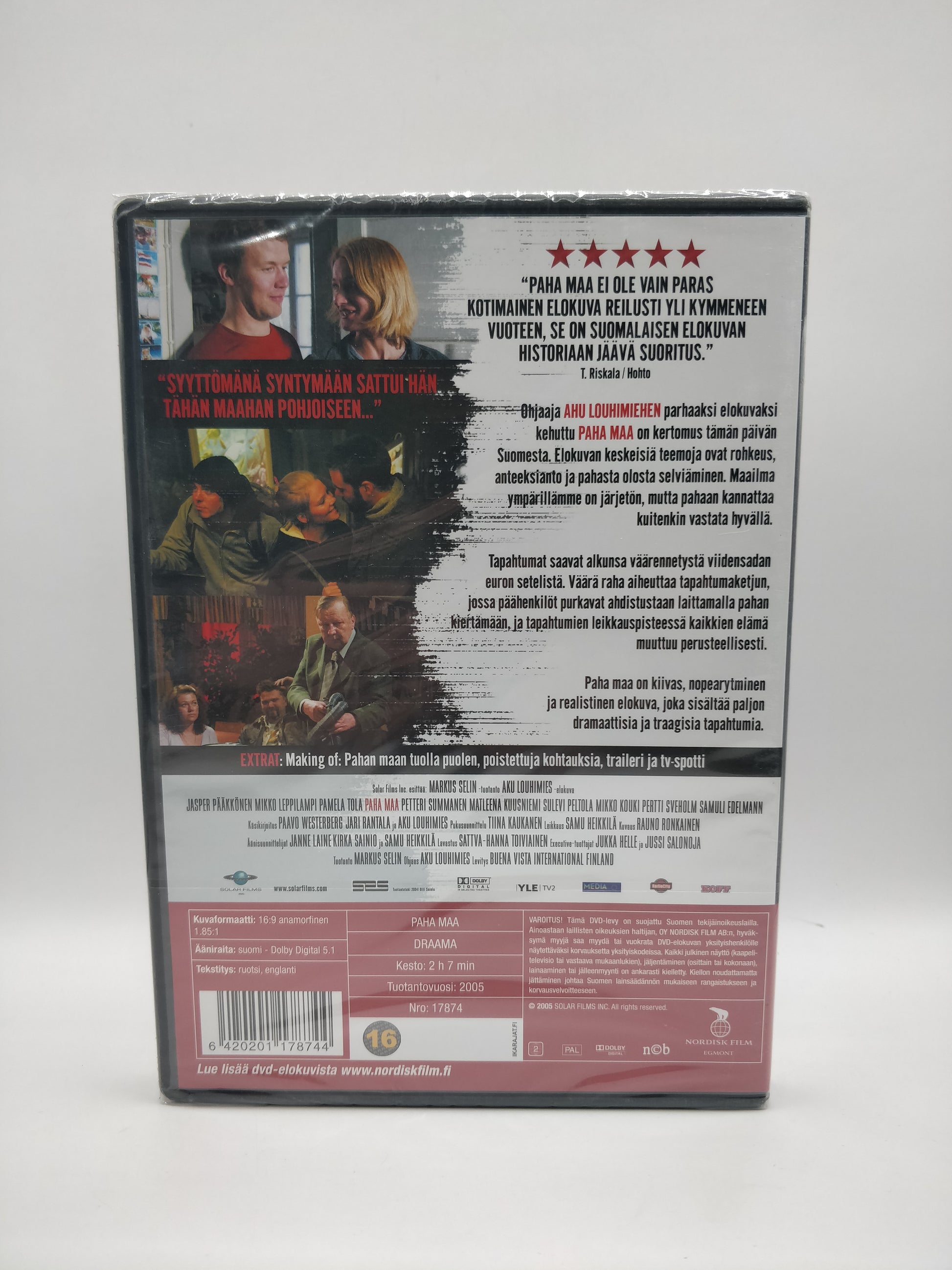 Directed by Aku Louhimiees, Paha maa is a violent, touching and visually arresting depiction of contemporary Finland. The film is a cleverly constructed weave in which small and innocent actions set off an irreversible chain of events. It all begins with a counterfeit five-hundred-euro note that passes from hand to hand, changing the course of the lives of everyone it meets – often with fatal consequences.