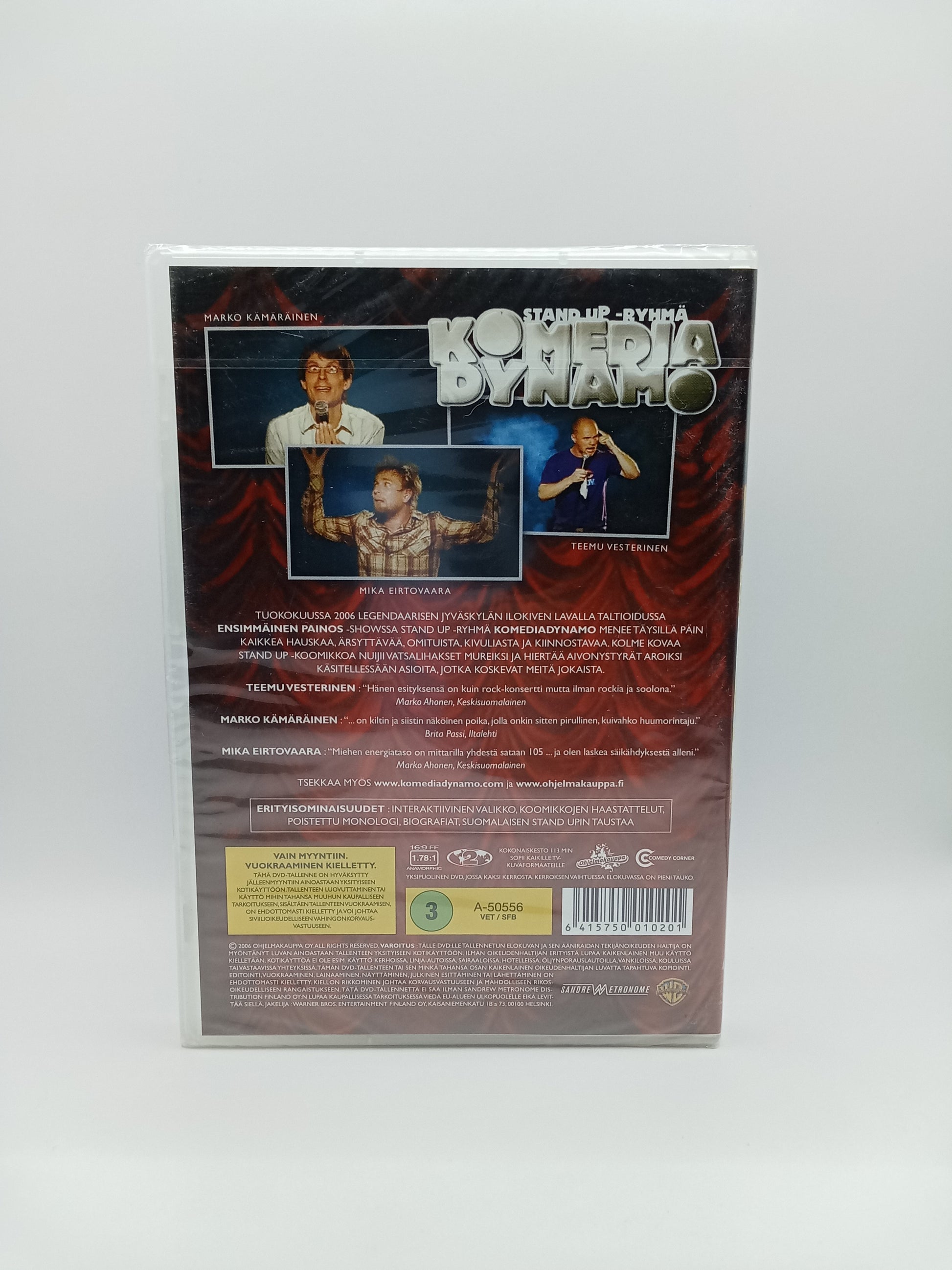 Haluatko kokea parhaan stand up -klubin tunnelman suoraan kotisohvaltasi? Komedia Dynamo – Ensimmäinen painos tuo ruudullesi joukon Suomen eturivin koomikoita ja nousevia tähtiä, jotka eivät säästele itseään saati yleisöään. Tämä DVD on tallenne ajalta, jolloin suomalainen stand up -kulttuuri otti isoja harppauksia, ja se tarjoilee tykitystä laidasta laitaan.